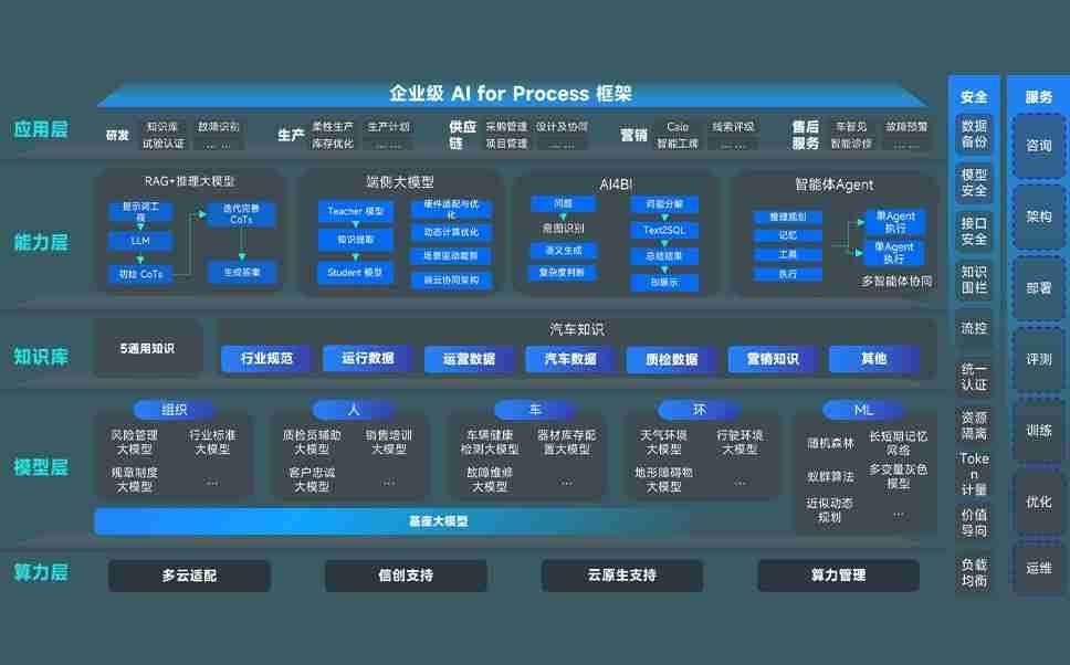 尊龙z6问学智车解决方案是一套基于AI技术的汽车行业智能化系统,,覆盖从底层算力到顶层AI应用的全栈方案。。方案由算力层、、模型层和应用层组成:算力层,,,方案支持多种一体机配置,,,具备云端灵活部署、、、、多云适配以及动态优化计算资源的能力;模型层,,,,尊龙z6问学平台版提供了企业级AI应用一站式构建与管理平台,,,,支持基于后训练强化技术的汽车企业专属模型的训练、、、评测和运营;应用层,,尊龙z6问学DeepSeek版提供包括超级员工、、智能招采、、、、智能营销、、智能客服、、AI for BI等一系列解决方案,,,可助力汽车行业实现数字化转型,,,,让管理更智能、、、响应更敏捷。。。。